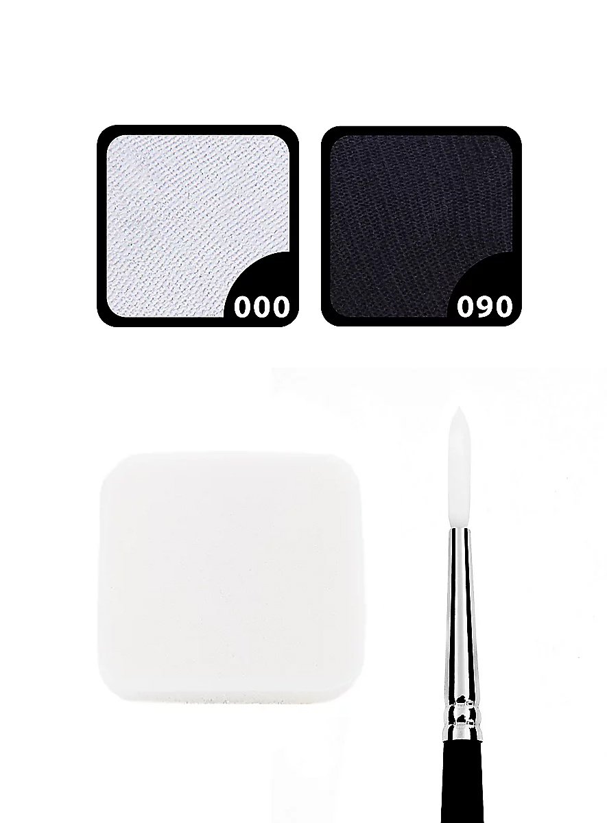 Makeup sættet sort-hvid med svamp og pensel er et praktisk karneval- og Halloween-sminkesæt og indeholder alt, hvad man har brug for til den vellykkede forvandling til en sjov eller uhyggelig skabning! Uanset om det er vampyr, skelet, pandabjørn eller sød kat - med kun to farver opstår der utroligt mange muligheder. Med den medfølgende svamp kan større områder hurtigt og nemt males. Penslen bruges bedst til detaljer og præcise linjer.