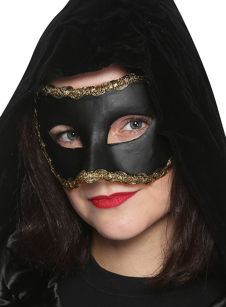 Colombina Fløjl Sort Guld Venetiansk Maske
