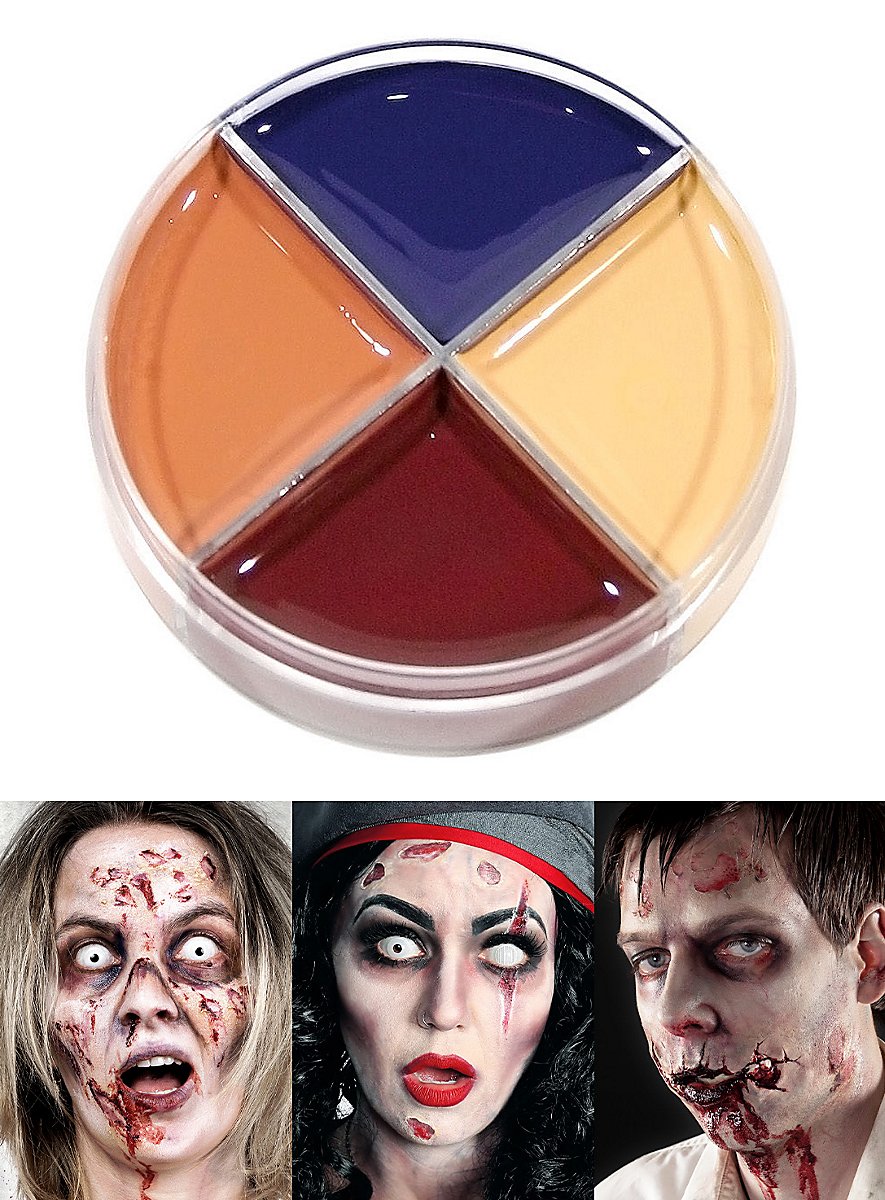 Med vores sår creme makeup kan du nemt og hurtigt skabe grimme sår og fæle skader. Makeuppet er særligt egnet til at sminke latex-applikationer og til brug på horrorhud. Creme makeup til sår kan nemt vaskes af med meget varmt vand og sæbe eller en vaskecreme. Også pudret sminke kan fjernes på denne måde.