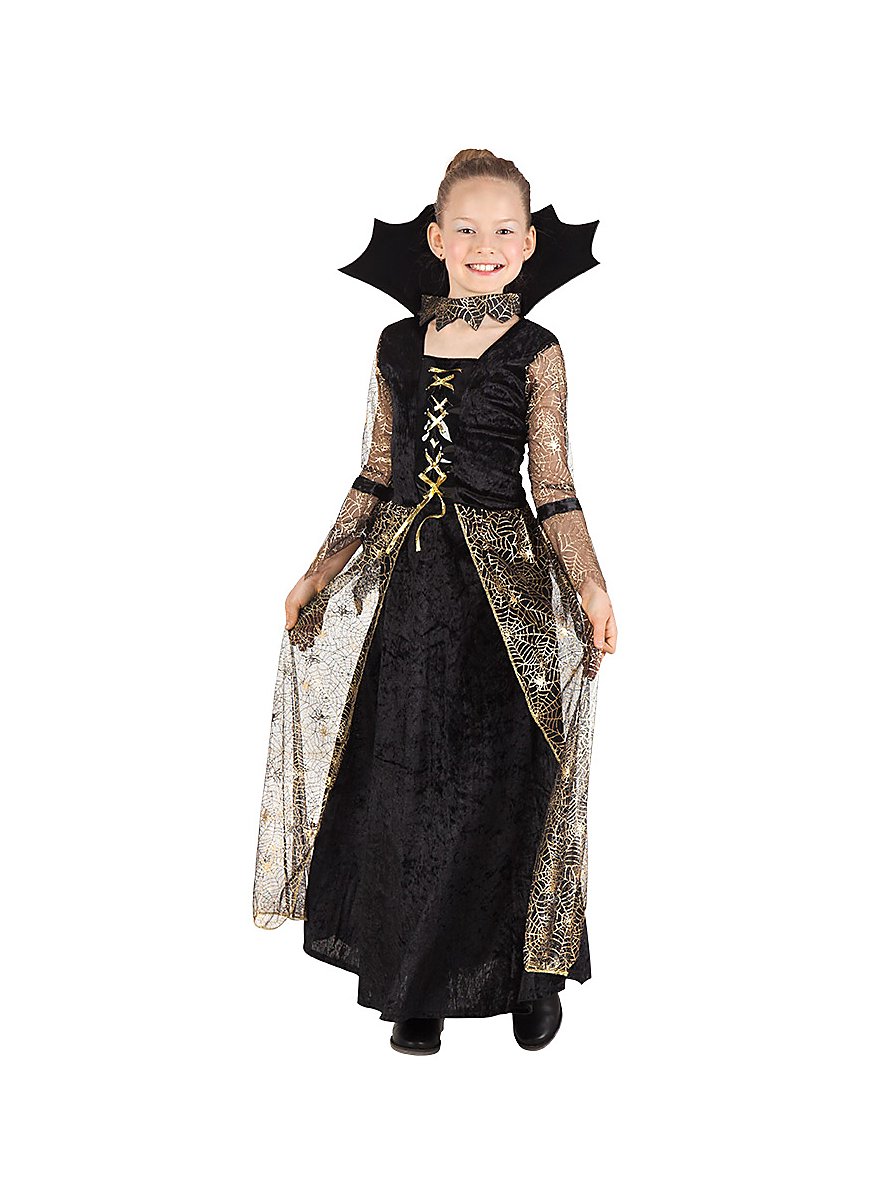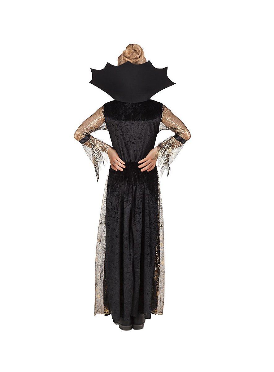 • ærmer og øverste nederdel i metalliserede fibre med edderkoppemotiver
