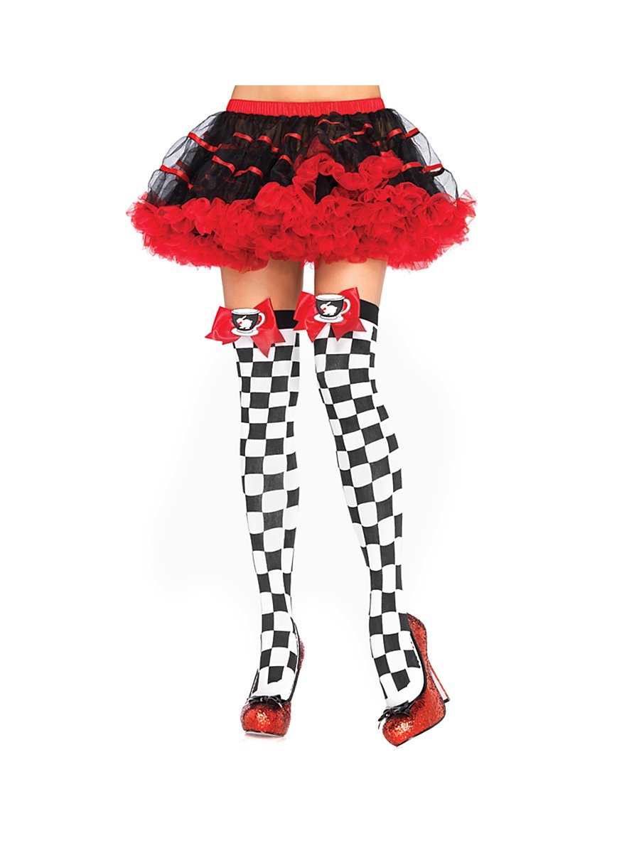 • Overknee strømper i sort-hvidt skakbrætmønster
