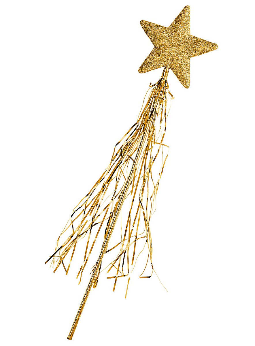 • stav med gylden glimmerstjerne og ligeledes gylden lametta