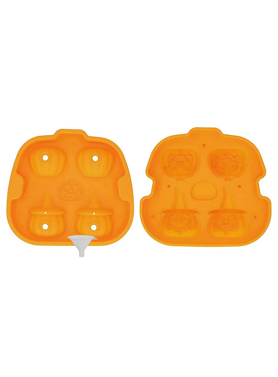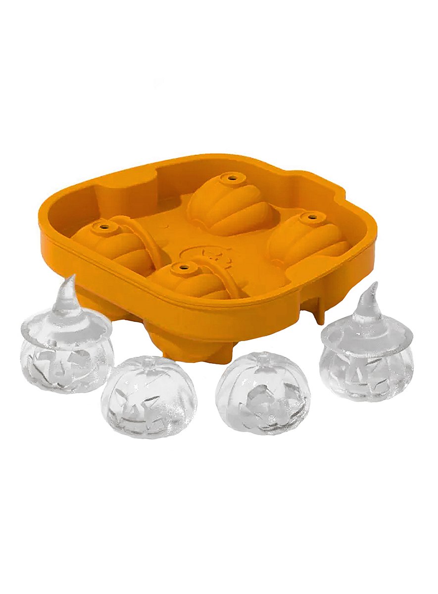 Med isterningeformen af silikone til fire græskar lykkes det dig at lave uhyggelige isterninger til dine Halloween-drinks og søde chokolade-græskar til din næste Halloween-kage.