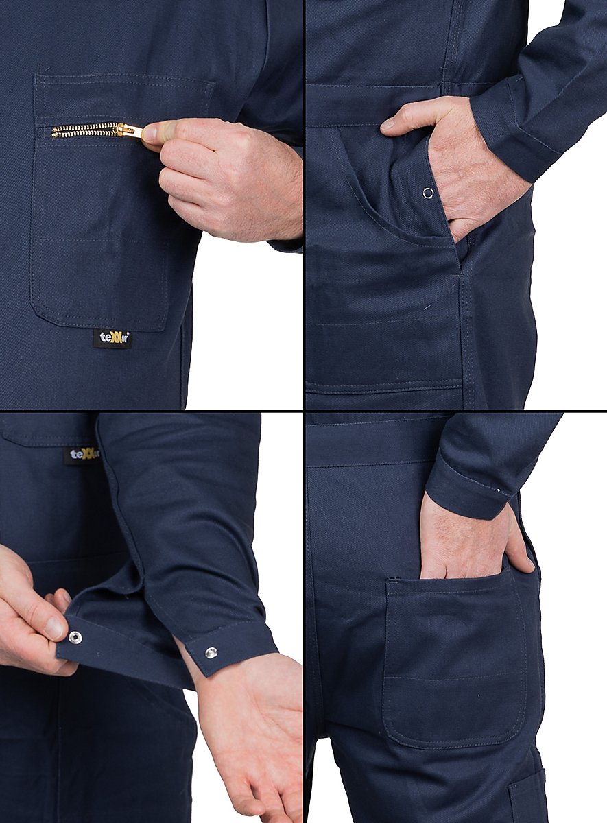 • robust overall med ekstra stærk søm og dobbeltlagede lommer