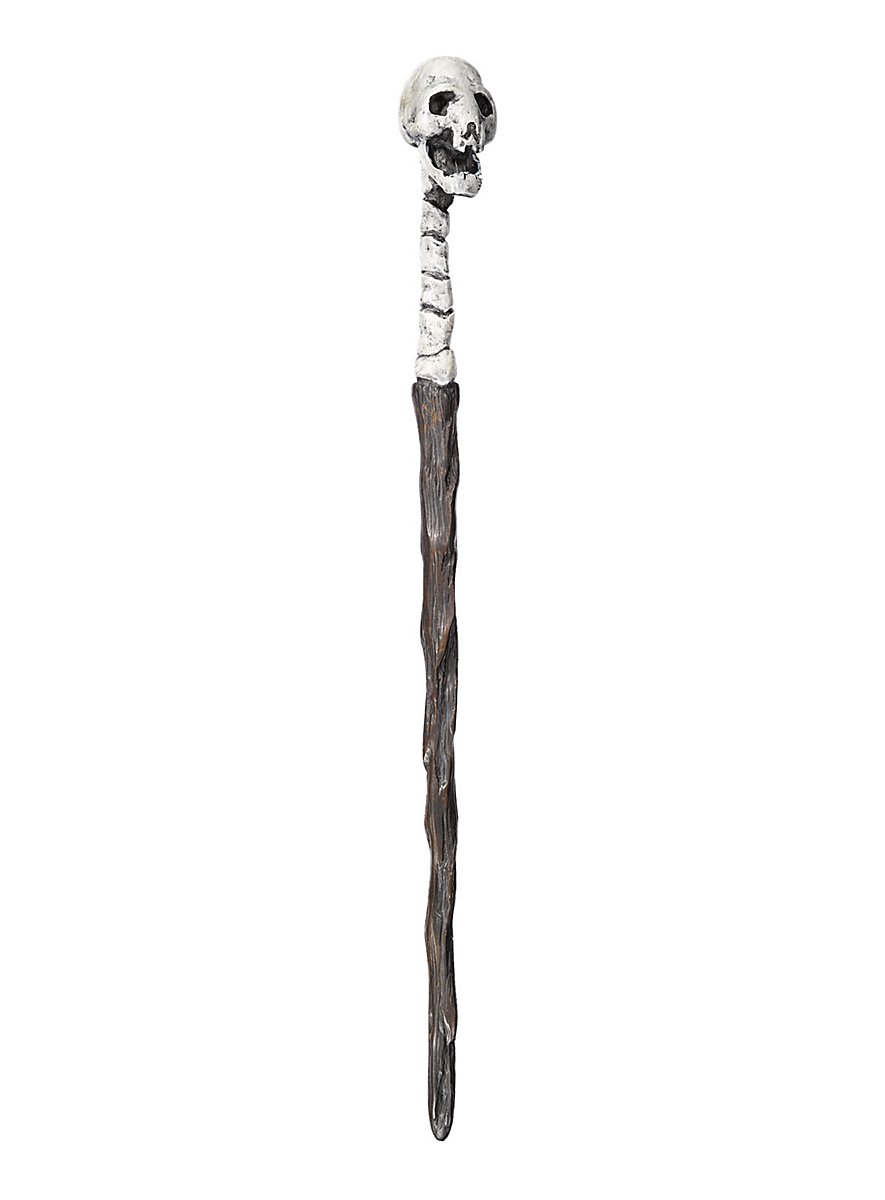 Denne Dødsæder dødningehoved tryllestav fra serien af vores premium samlerobjekter er i alle detaljer efterlignet originalen fra "Harry Potter"-filmene. Man kan næsten mærke den magiske energi, der flyder gennem denne originalt licenserede stav. For troldmandselever, fans og samlere!