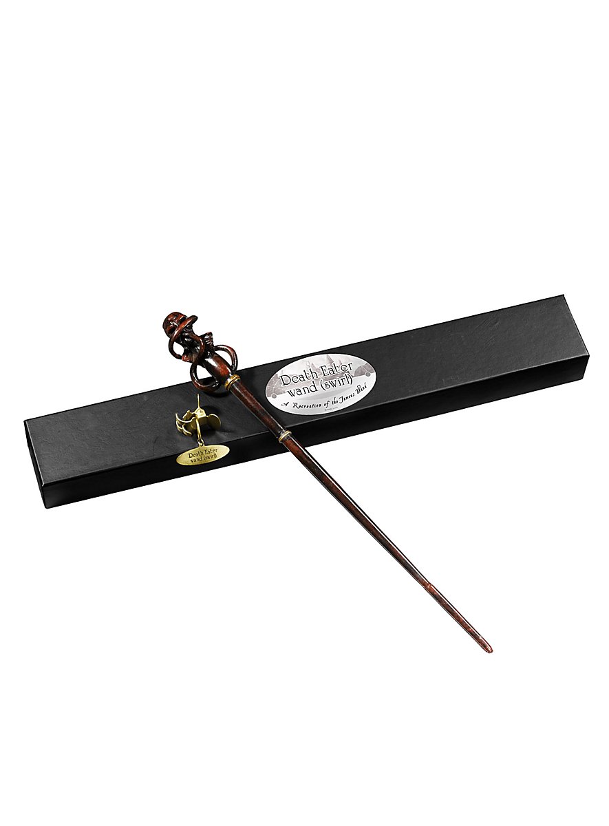 Denne Dødsgardist Mørke Mærke tryllestav fra serien af vores premium samlerobjekter er i alle detaljer skabt efter originalen fra "Harry Potter"-filmene. Man kan næsten mærke den magiske energi, der strømmer gennem denne originalt licenserede stav. For troldmandselever, fans og samlere!
