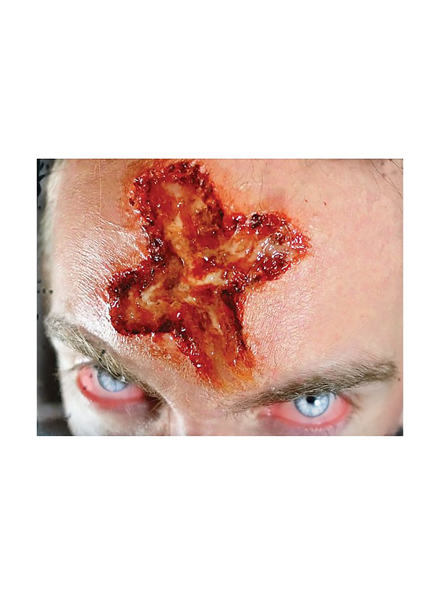 Kors Brandsåret ser ondt ud og er definitivt ikke noget for sarte sjæle. Det passer perfekt til dæmoner, besatte, zombie-nonner og andre uhyggelige væsner. Perfekt til alle, der vil chokere ordentligt til Halloween eller på den næste temafest!