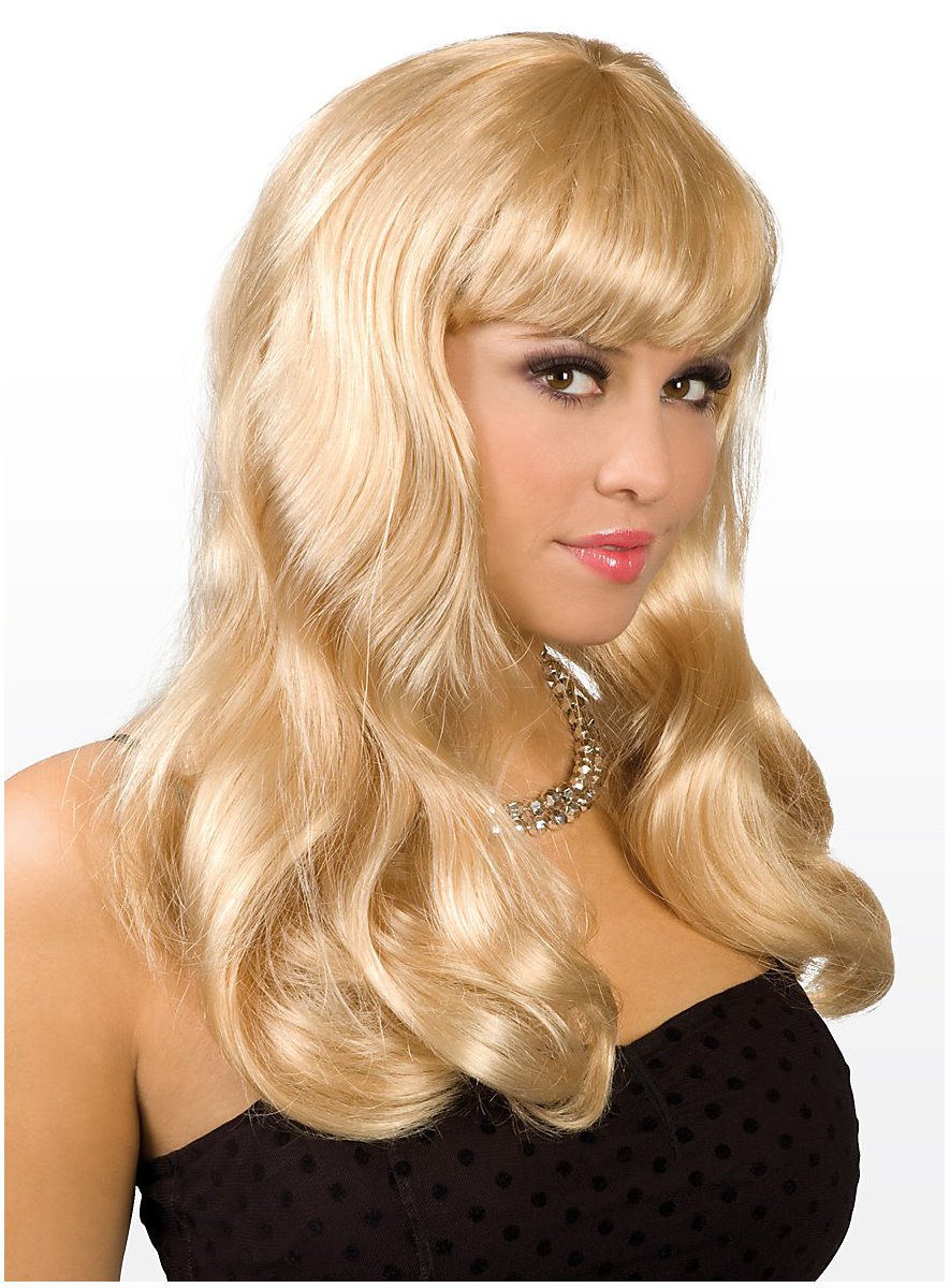 Blondiner foretrækkes! Med denne lange hårpragt i naturligt guldblond behøver I ikke undre jer, hvis herrerne pludselig med fornøjelse holder døren op for jer! Det mellemlange, glatte hår falder let bølget over skuldrene og har fortil en kæk, lang pandehår. Et elastisk hårnet garanterer optimal holdbarhed og nem tilpasning til ethvert hovedomfang. Denne fantastisk skinnende langhårsparyk i blond gør jer til en skønhedsgudinde med stærkt øget diva-potentiale.