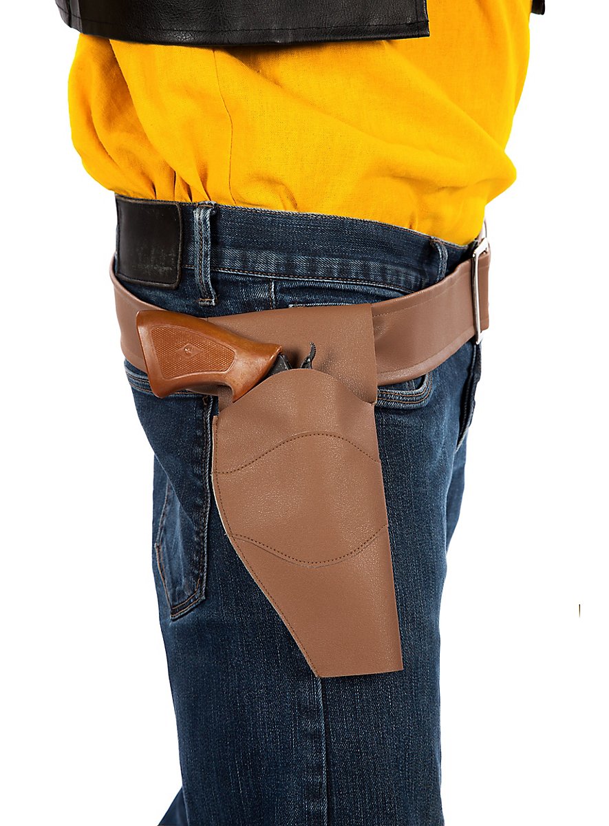 Hvad ville Lucky Luke være uden en revolver? Og for at denne altid er let tilgængelig, har den kultiske westernhelt selvfølgelig brug for et passende pistolhylster! Vores westernbælte i kunstlæder til voksne kan bæres løst om hoften og er trinløst justerbart med sin spænde. Selve hylsteret kan flyttes eller tages af ved behov og egner sig til alle Lucky Luke legetøjspistoler.