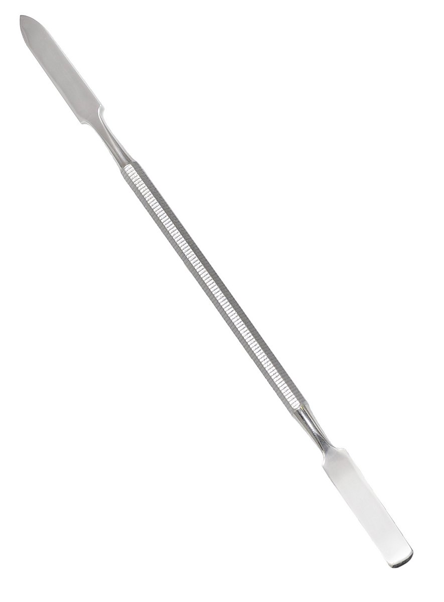 Perfekt til modellering og blanding af SFX makeup: Modelleringsspatel i rustfrit stål. Kan bruges på begge sider og har skridsikkert greb.