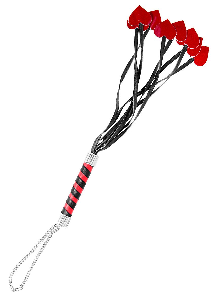 Den legesyge pisk har hjerter på remenderne, stras-applikationer på grebet og en praktisk løkke til håndleddet. Præcis det rigtige tilbehør til en lille kærlighedsleg!