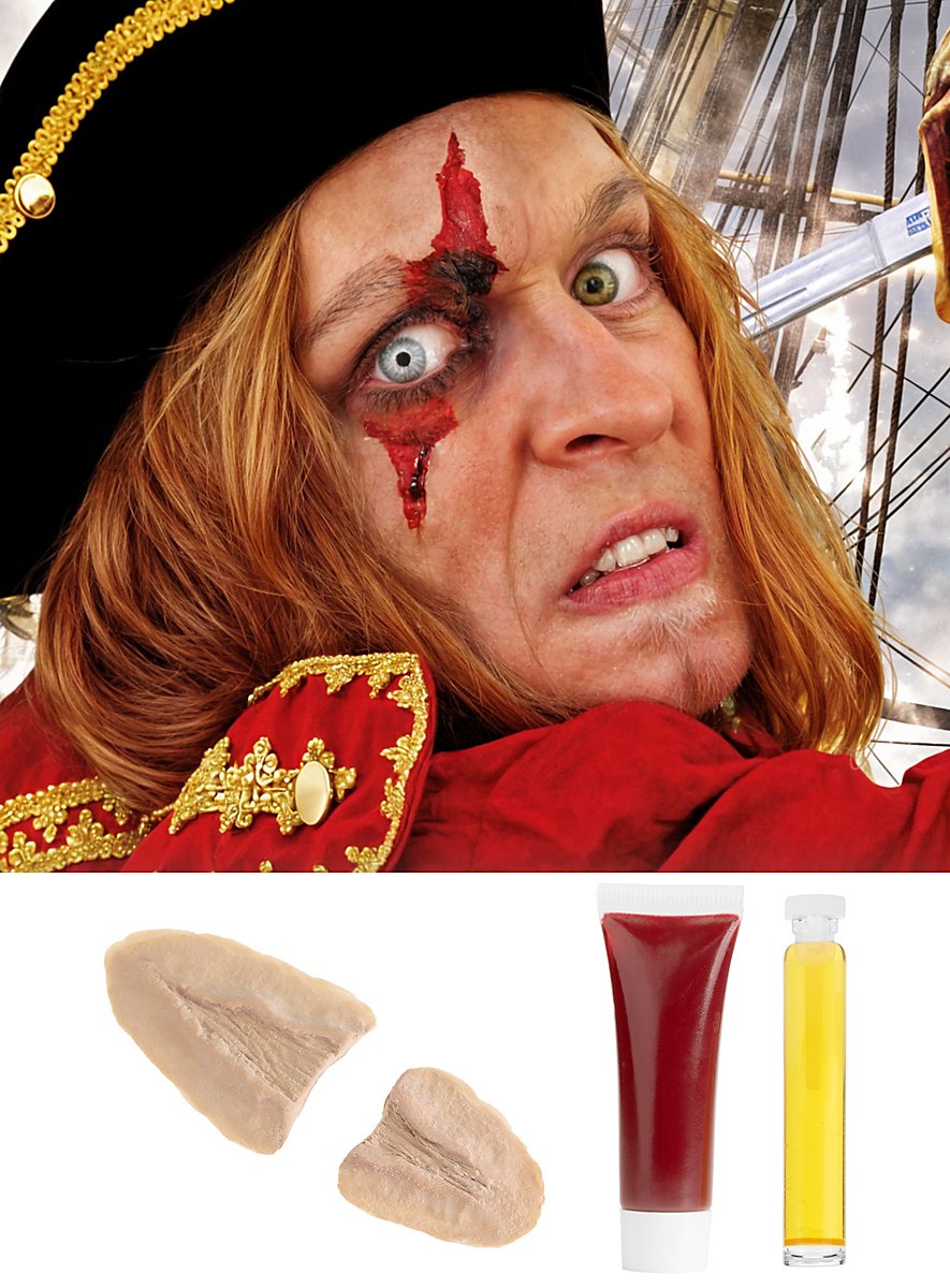 Med dette professionelle snitskade-sæt kan du nemt og hurtigt forvandle dig til en pirat, fribytter eller en anden karakter fra din fantasi. Som alle maskworld produkter er også dette snitskade-sæt underlagt de strengeste kvalitetskontroller for at leve op til kravet om et professionelt forvandlingsresultat. Alle maskworld latex-applikationer er håndlavede. Latex udmærker sig ved sin ekstreme elasticitet og holdbarhed. På grund af denne egenskab tilbyder applikationerne også ved hyppig brug høj bærekomfort og en særligt realistisk virkning.