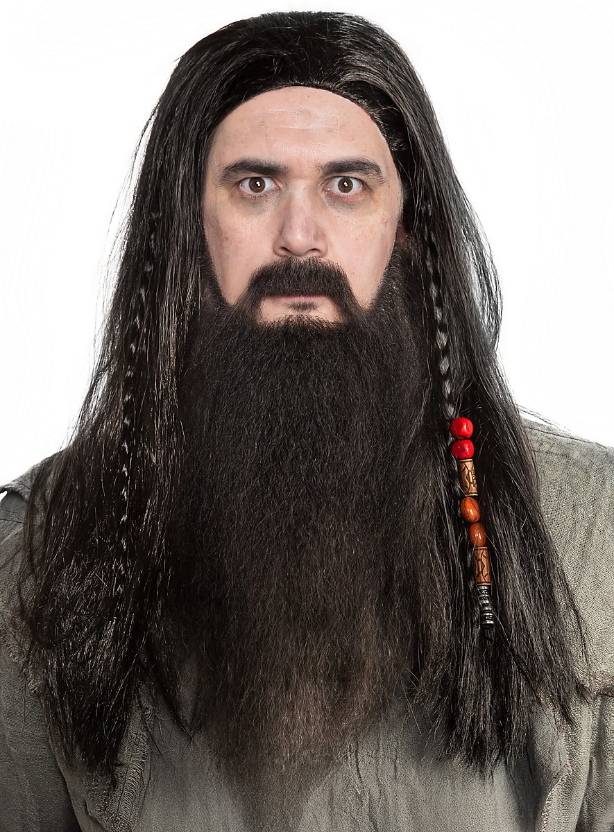 Piratparyk fra MASKWORLD med flettede fletninger og smykker