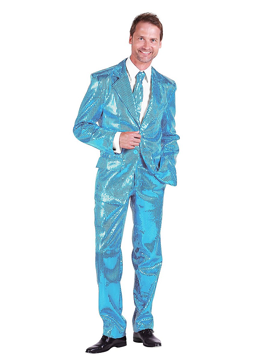 Dette festjakkesæt til herrer, der er fuldstændig besat med turkisfarvede pailletter, er et modeudbrud og forvandler dig til en levende diskokugle!