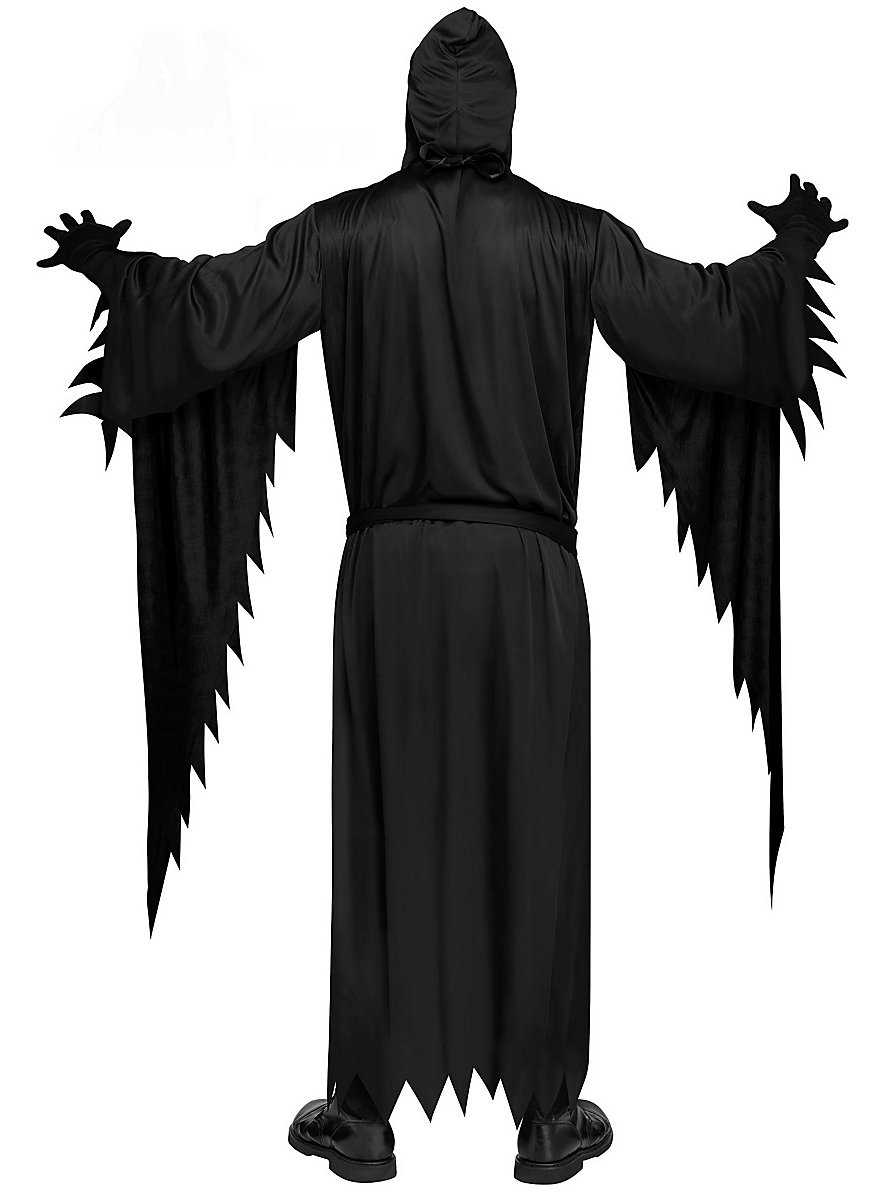 • med hættekåbe, bælte, lysmaske og batteriboks