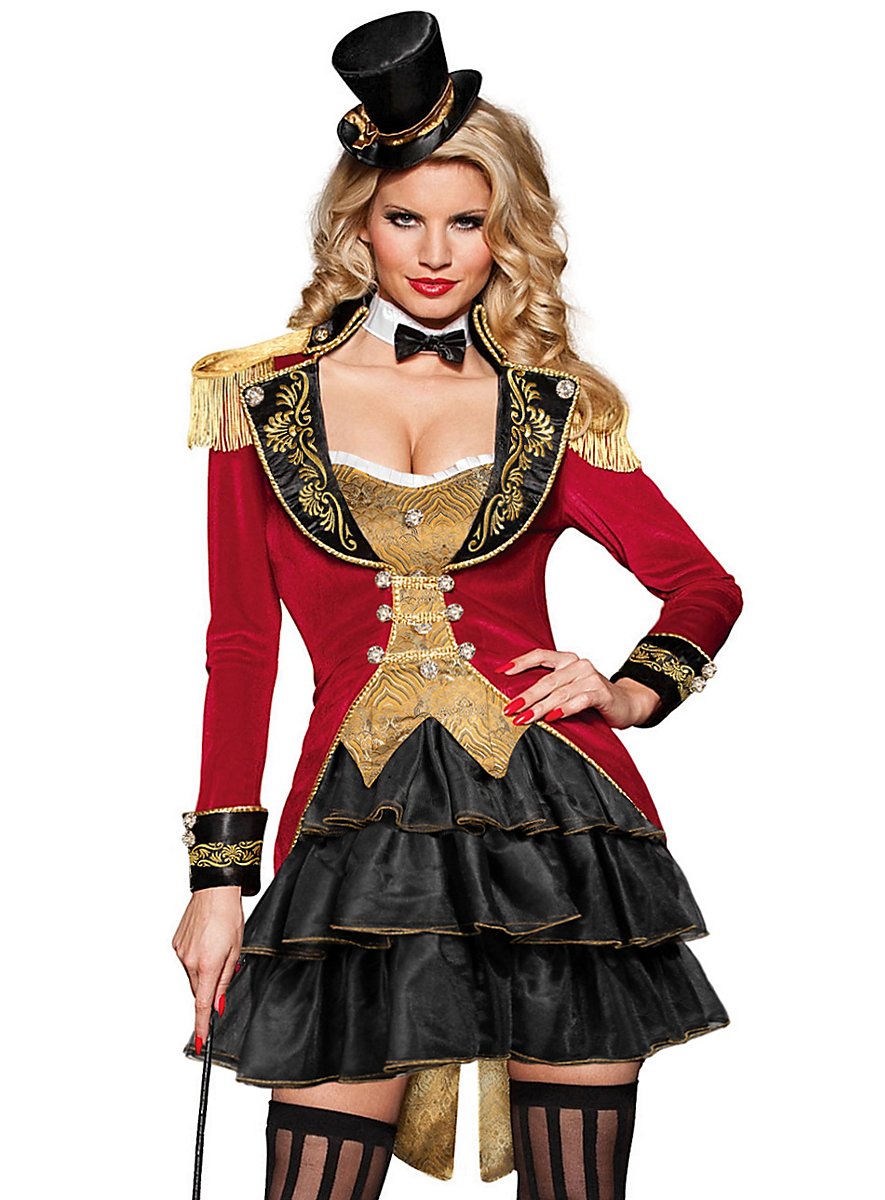 Fortryllende, detaljeret burlesque kostume: den forførende cirkusdirektør. Høj kvalitet og ekstravagant design!
