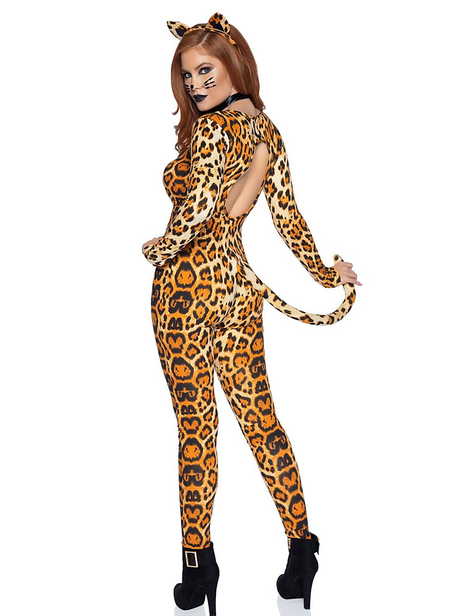 Storbyjunglen er farligere end nogensinde før, siden sultne vildkatte strejfer gennem de mørke gyder. Den omhyggeligt mønstrede catsuit fra det sexede vildkat kostume sidder som en anden hud og dækker med sine lange ærmer og ankellange bukser næsten hele rovkattens krop. Kun dekolletéet og ryggen er udsparet. En polstret leopardhale fastgøres sikkert til dragten med en medfølgende sikkerhedsnål, og en stofbetrukket hårspænde bærer de små katteører. Det tætsiddende halsbånd i læderudseende er pyntet med blinkende strassten og et iøjnefaldende rødt hjerte. Jagten er åbnet.