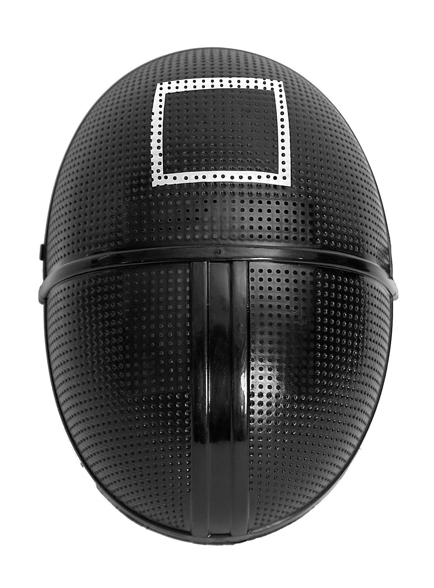 Bliv til spilleder Kvadrat som i Netflix-serien! Denne fede sorte halvmaske med gummibånd er perfekt til enhver opsynsmand.