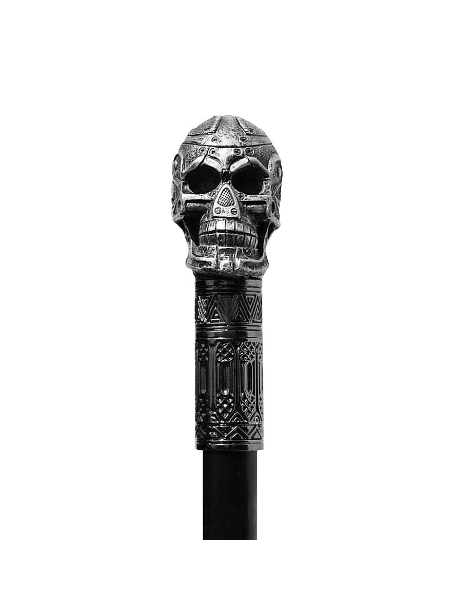 Dødningehovedet af kunstharpiks kan ved behov skrues af og på igen fra den metalfremstillede stok. Til støjdæmpning er der monteret en gummifod i den nederste ende. Den samlede længde er ca. 87 cm.