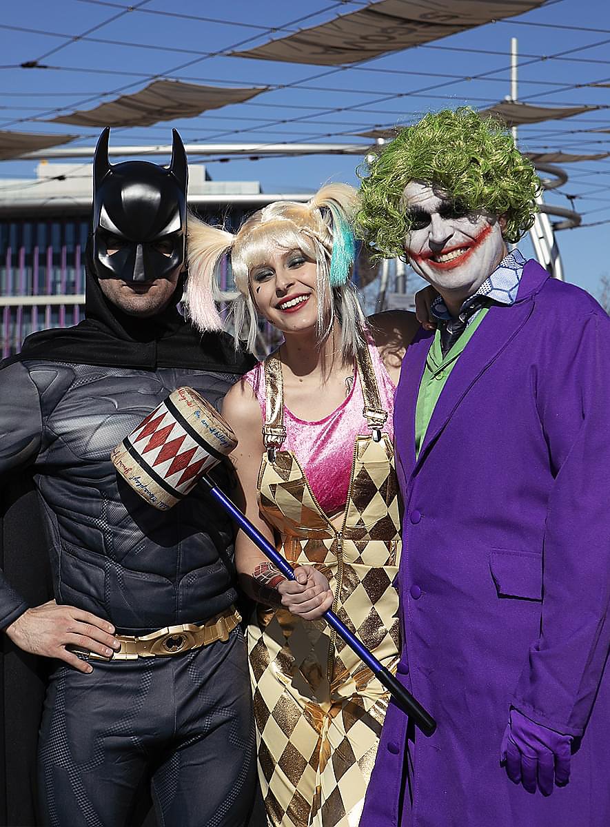• med helkropsmuskeldragt, bælte, halvmaske og ekstra stor kappe