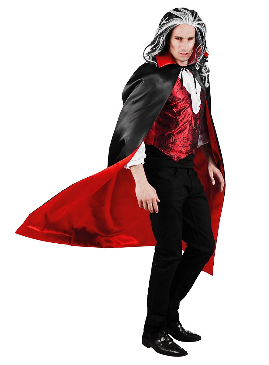 Ideelt, hvis du til Halloween vil slippe ind i Draculas rolle eller til den næste temafest vil fremstille en hvilken som helst anden vampyr: Vampyr-kappe sort-rød vendbar, ca. 150 cm lang.