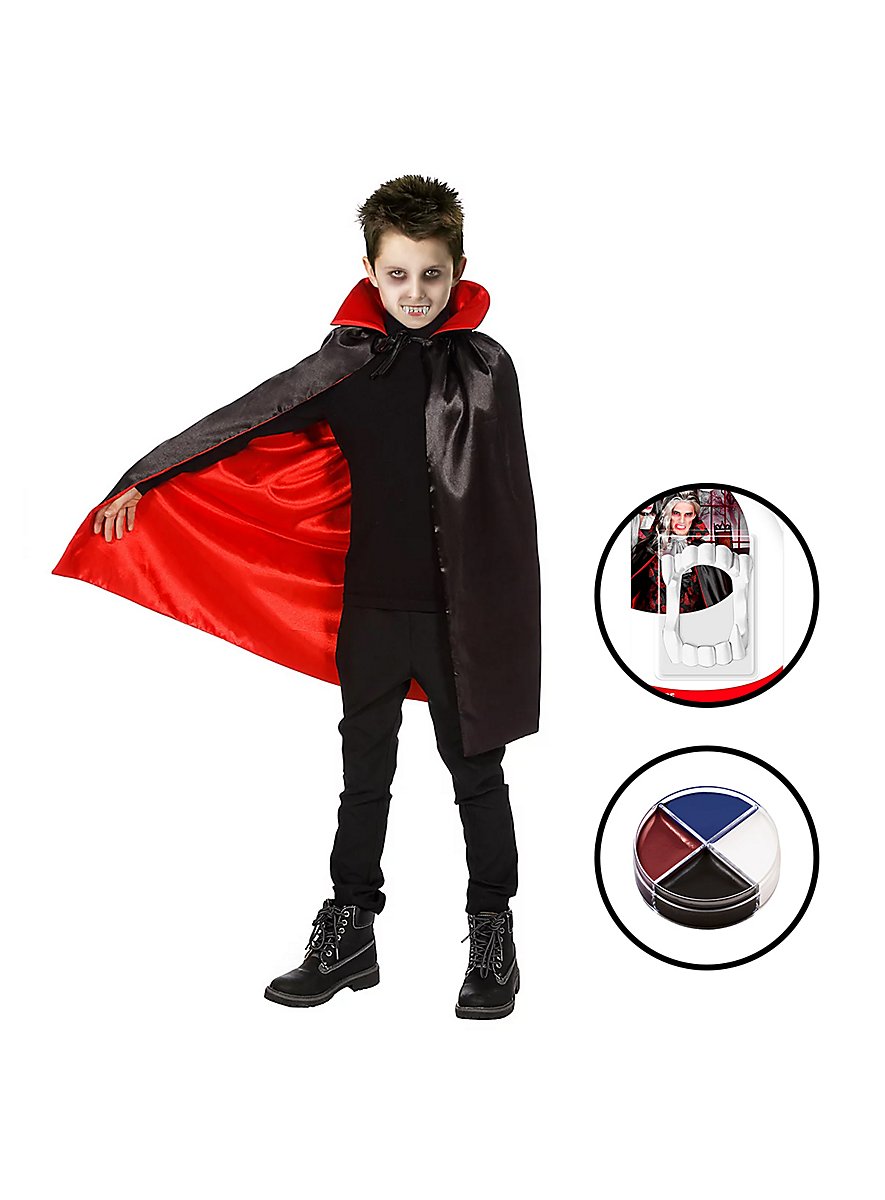 • Vampyrkostume til børn med kappe, vampyrtænder og vampyrsminke