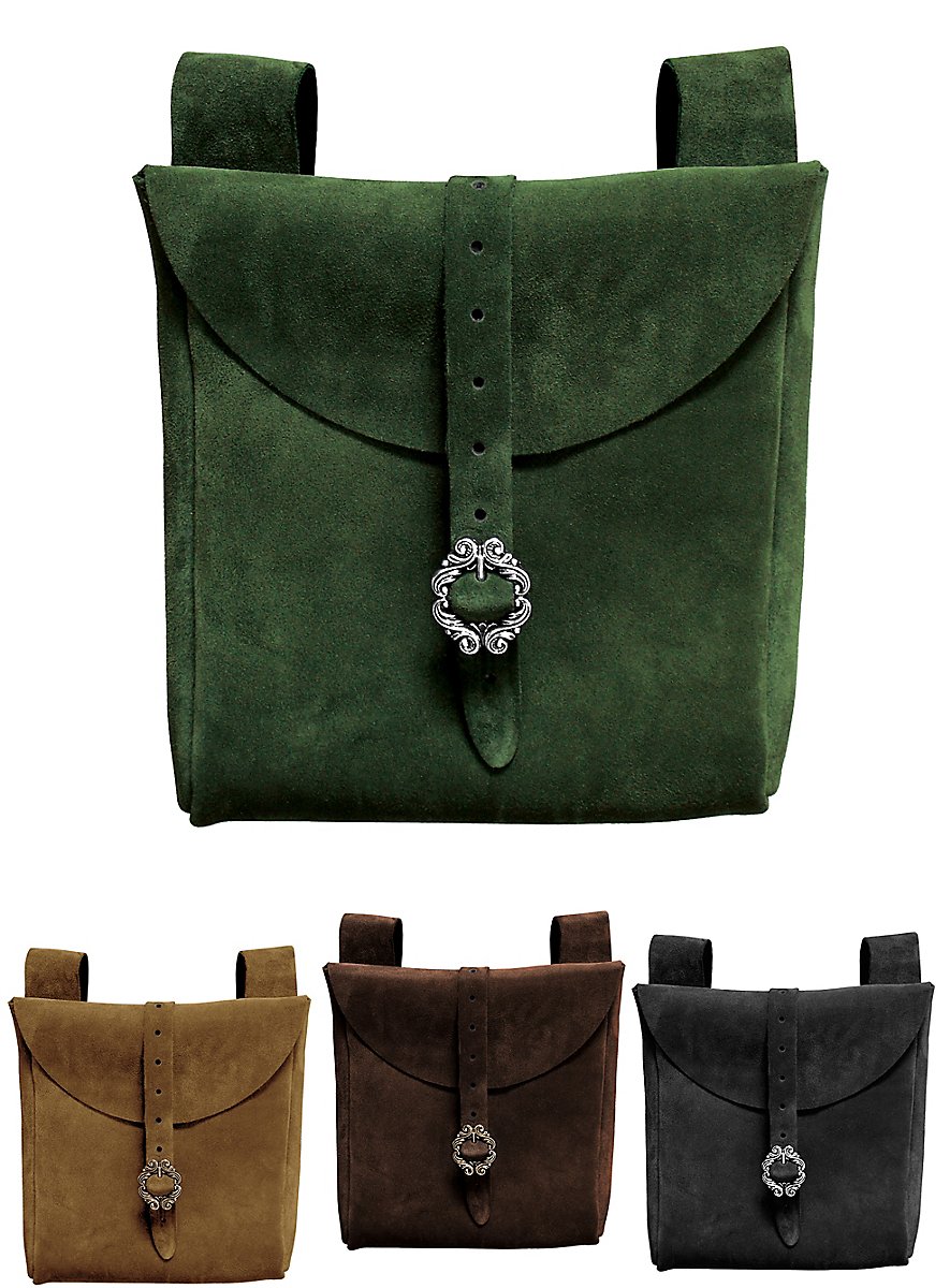 Dieses praktische Accessoire bietet stilecht Platz für so manche Dinge, die man gut gebrauchen kann. Der Dieb verstaut in der Tasche, die mithilfe zweier Schlaufen an Gürteln bis zu einer Breite von 6 cm befestigt werden kann, geheime Karten, Dietriche oder allerlei Diebesgut. Die Marktfrau hingegen bewahrt in der Tasche, die mittels einer hübschen Metallschnalle und eines Riemens verschlossen wird, ihre Verpflegung oder ihr Wechselgeld auf.