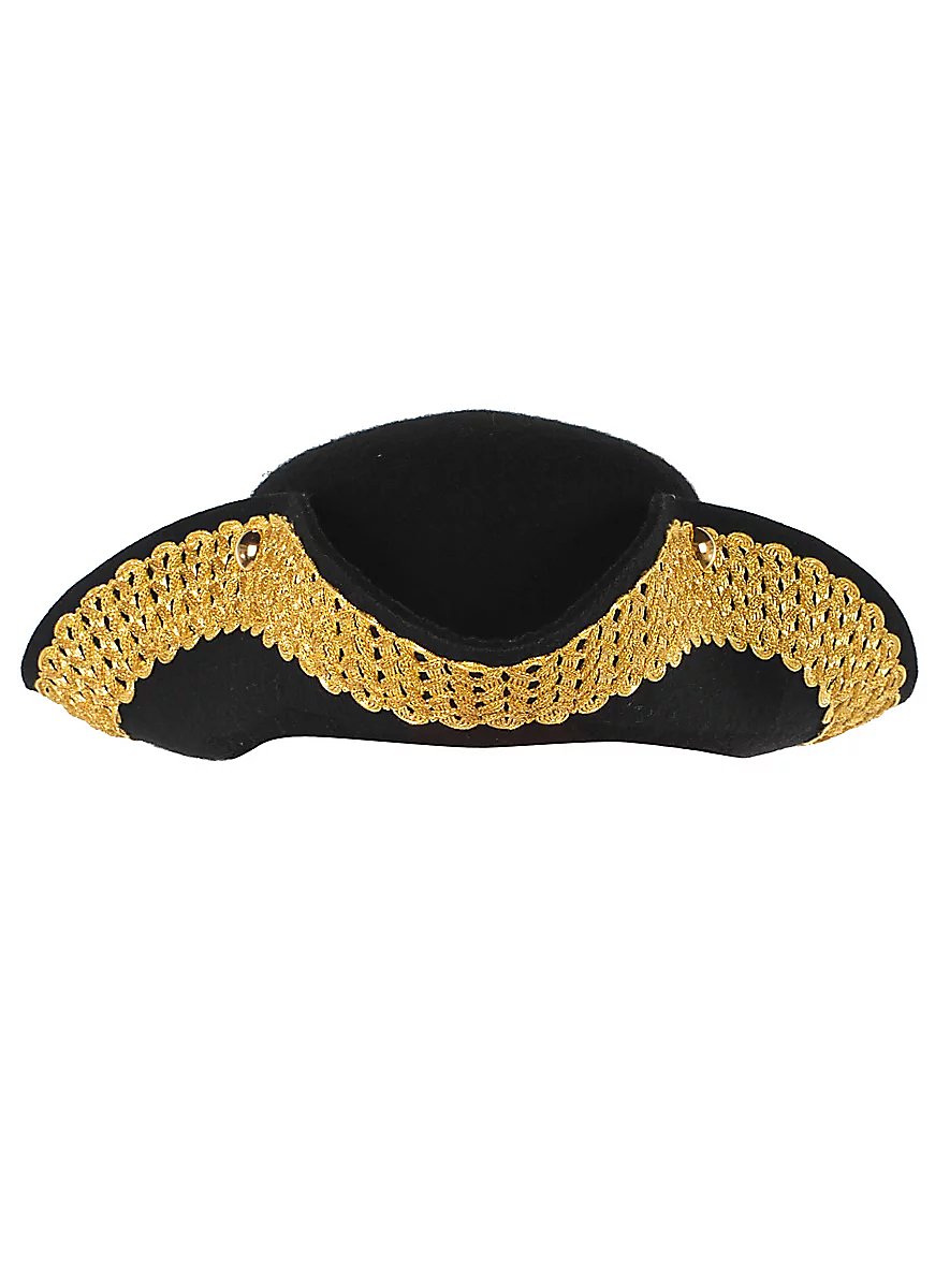 Piraten Dreispitz aus echter Wolle mit Goldborte