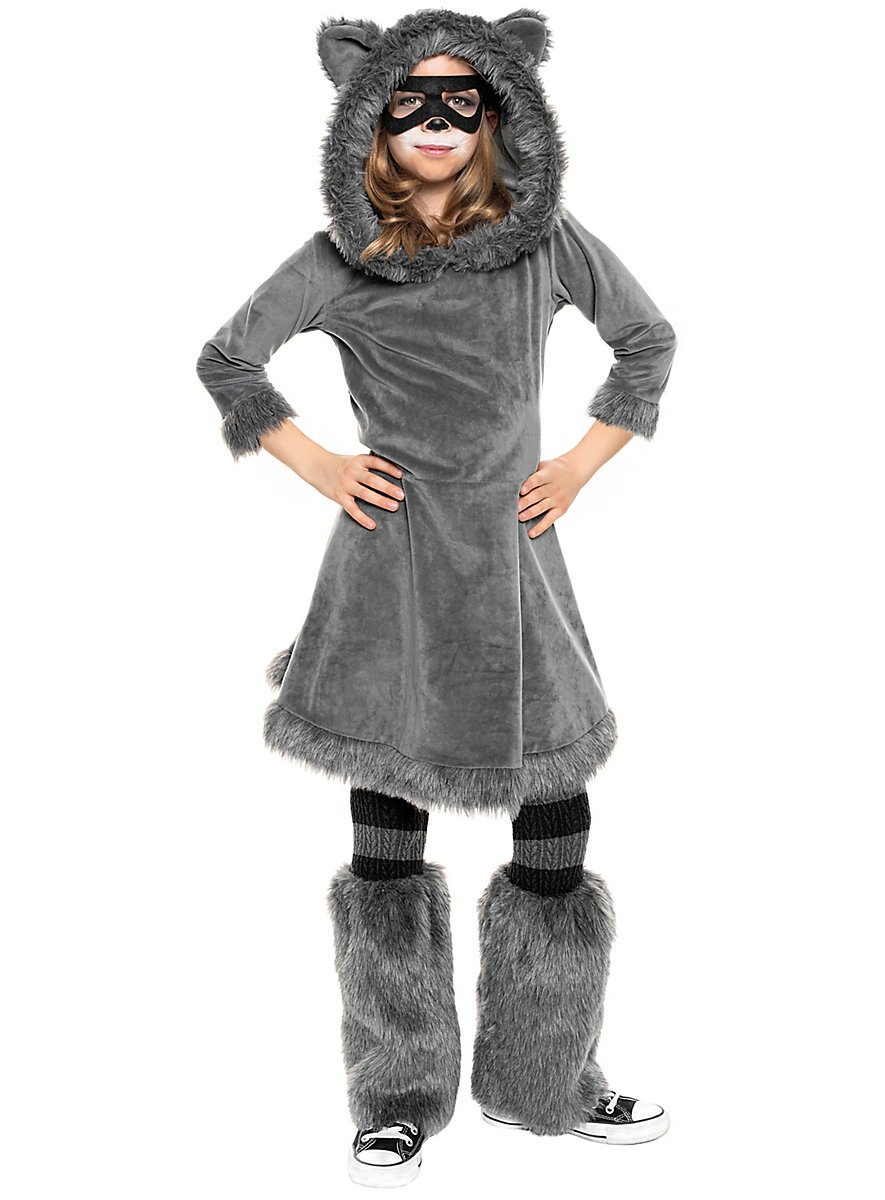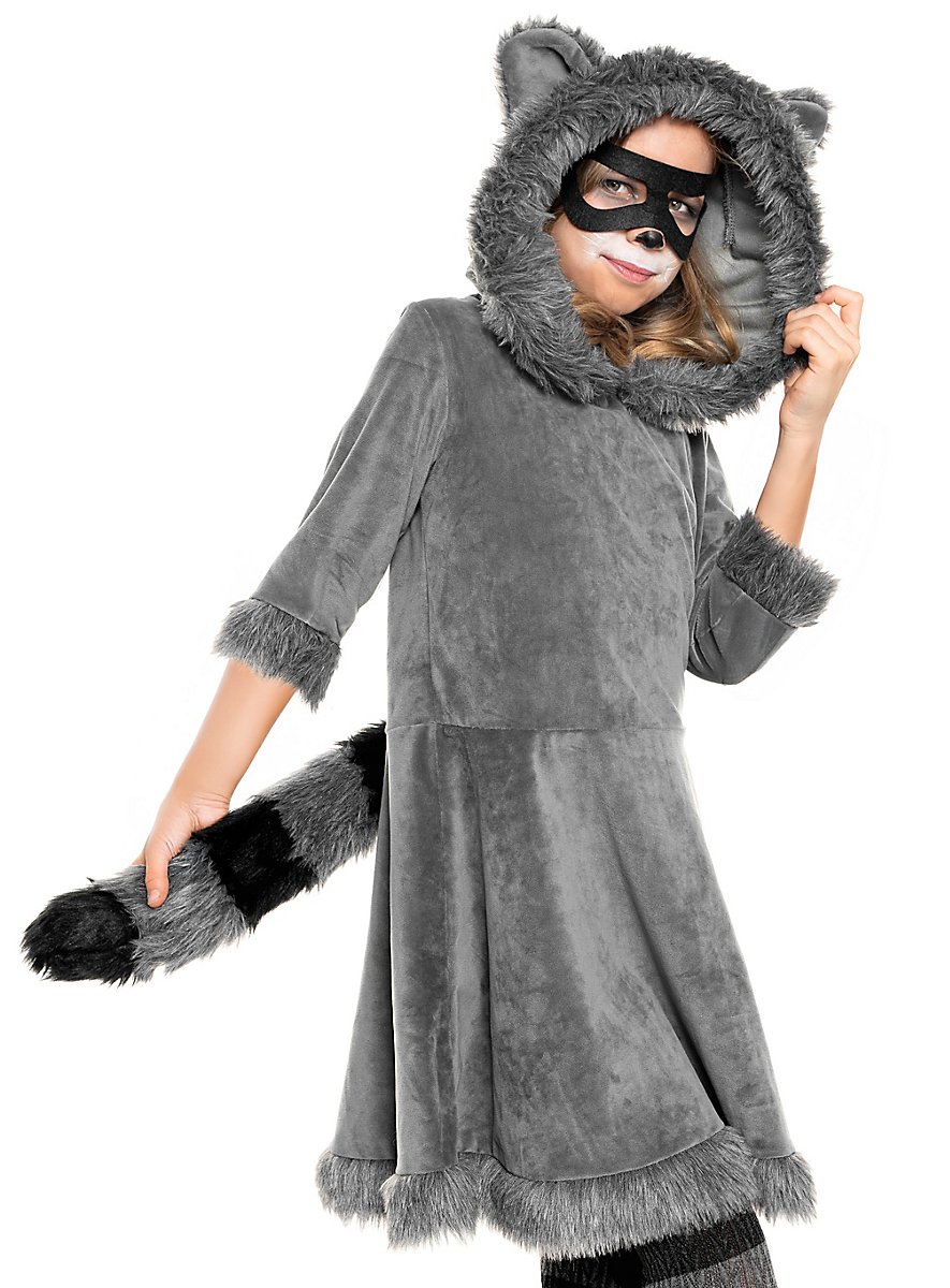Freches Waschbärkleid mit flauschiger Kapuze für Mädchen