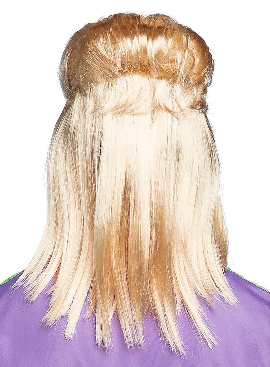 • Pelo sintético rubio, tupido y con un ligero brillo