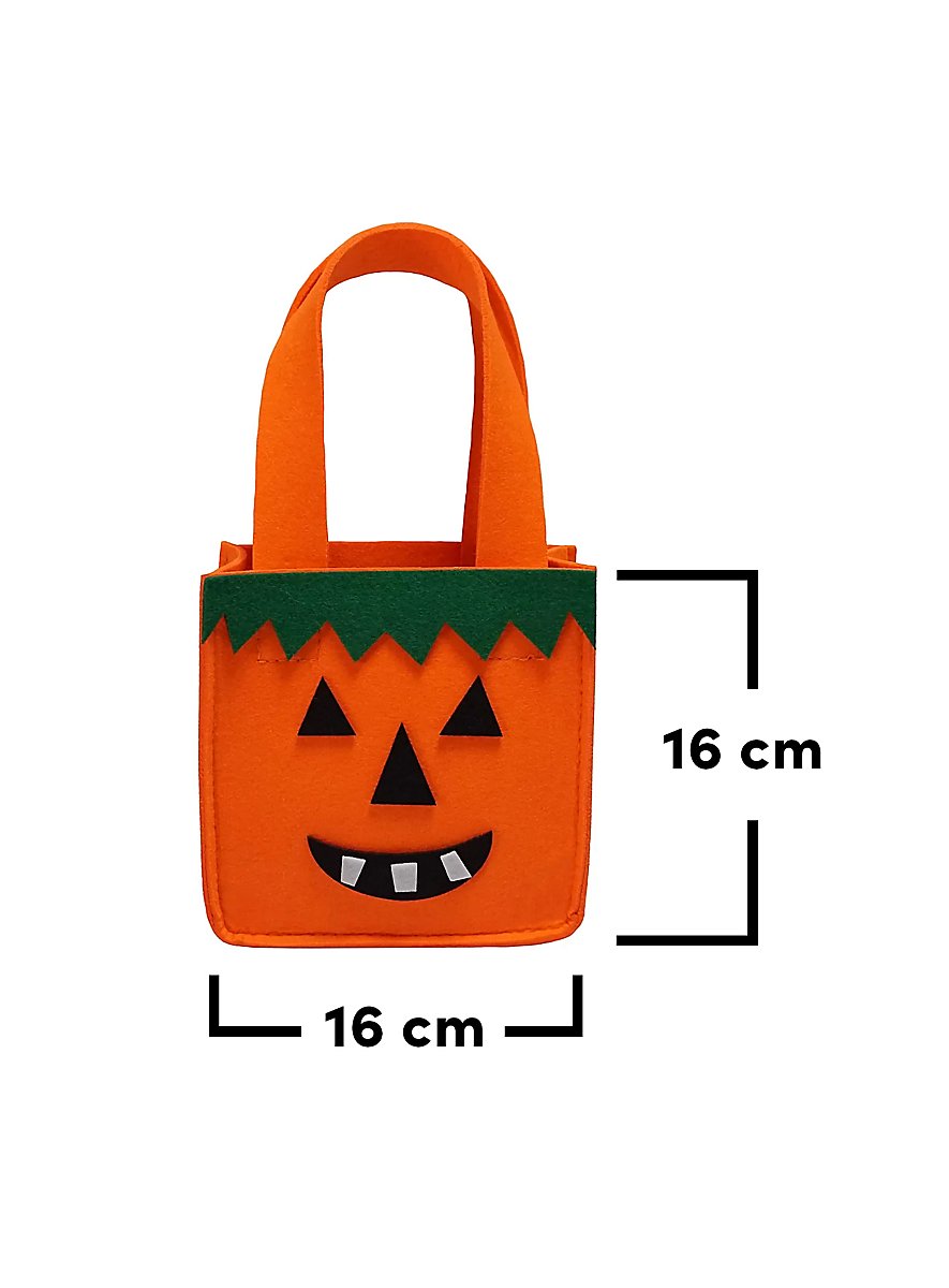 • decorada por un lado con una divertida cara de calabaza de fieltro