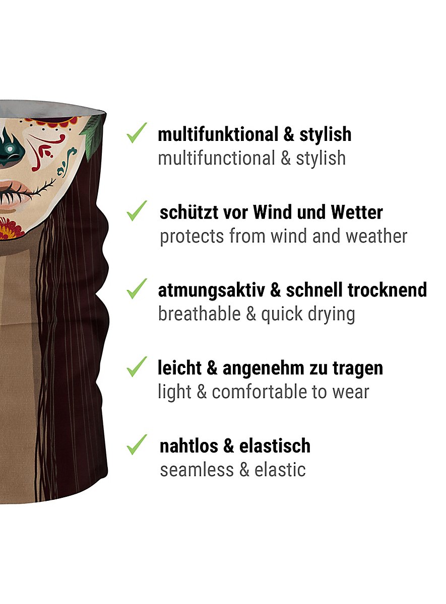 • multifuncional para usar como bufanda, pañuelo, mascarilla y pañuelo para la cabeza