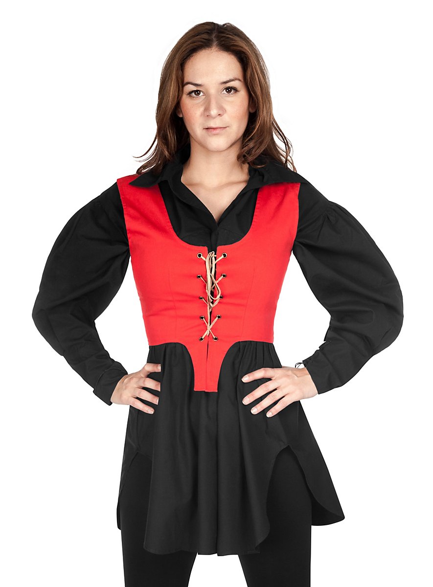 ¡El corsé rojo brillante está confeccionado en algodón puro y es un verdadero reclamo visual! Realza las curvas femeninas perfectamente gracias a las pinzas laterales y llega hasta la cintura alta. El hermoso cordón favorece el ajuste óptimo y además crea un escote seductor. Aquí se pasa una cinta de cuero marrón a través de los ojetes con refuerzo metálico y dos cordones puntiagudos se sitúan además decorativamente en la banda de la cintura. El corsé rojo puede llevarse por separado con un pantalón o una falda, pero también sobre una camisola, blusa o vestido hace buena figura. ¡Así vestidas atraeréis todas las miradas, ya sea en una fiesta histórica, en el LARP o en una celebración folclórica!