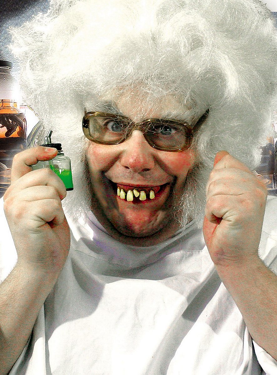 ¡Perfecto para personas que tienen que hacer una ciencia incluso de los dientes torcidos! Muchos experimentos peligrosos hacen que la sonrisa del científico parezca ahora más loca que benévola. Los químicos y los equipos de prueba caseros conllevan cierto riesgo. Visto así, los dientes de científico han salido bastante bien parados. La férula dental se puede adaptar individualmente gracias a la masa de impresión de dos componentes incluida. ¡Estos dientes son tan raros como el propio científico!