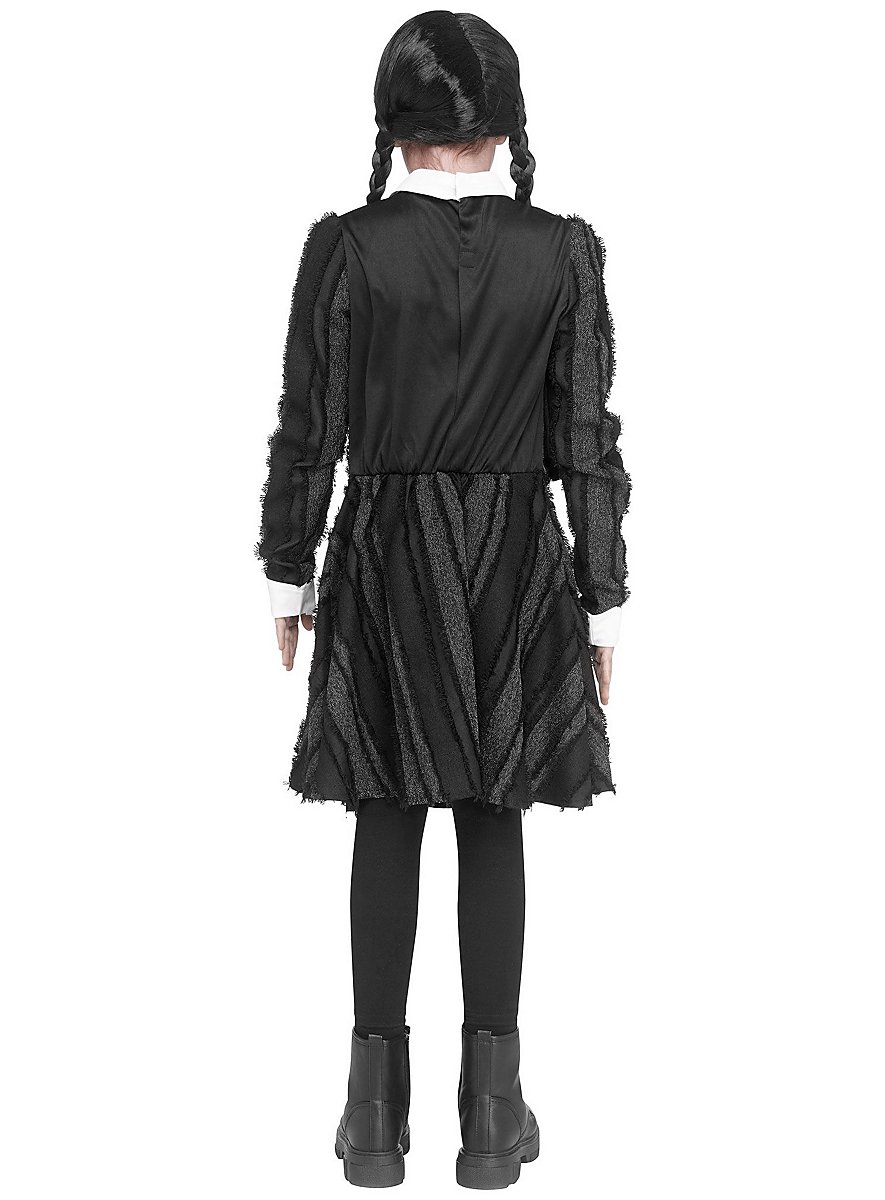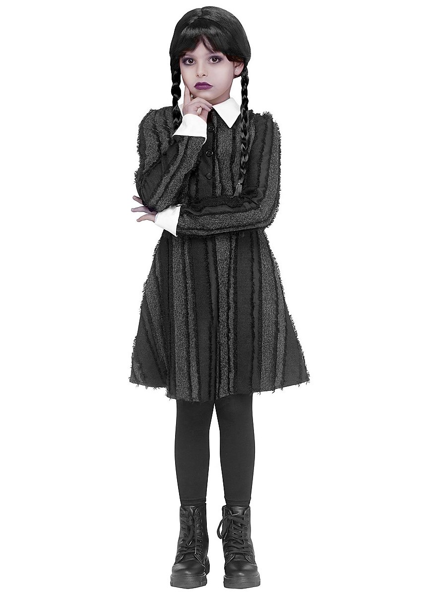¡Conviértete en la princesa oscura! Este disfraz para niñas inspirado en Wednesday Addams es la elección perfecta para todas las fans del estilo gótico. El vestido negro hasta la rodilla con cuello blanco tipo Peter Pan captura perfectamente el encanto siniestro de la chica de la Familia Addams. Perfecto para Halloween, Carnaval o eventos góticos.