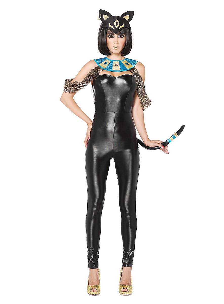 Simplemente divino: Seductor disfraz de gata al estilo de la diosa felina Bastet. Con catsuit, adorno para hombros y tocado.