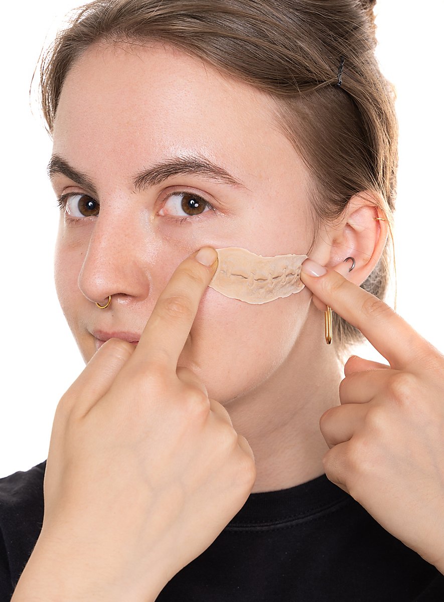 Consejo: Para hacer casi invisibles las transiciones de la aplicación de látex a la piel, recomendamos nuestra Piel de Horror.