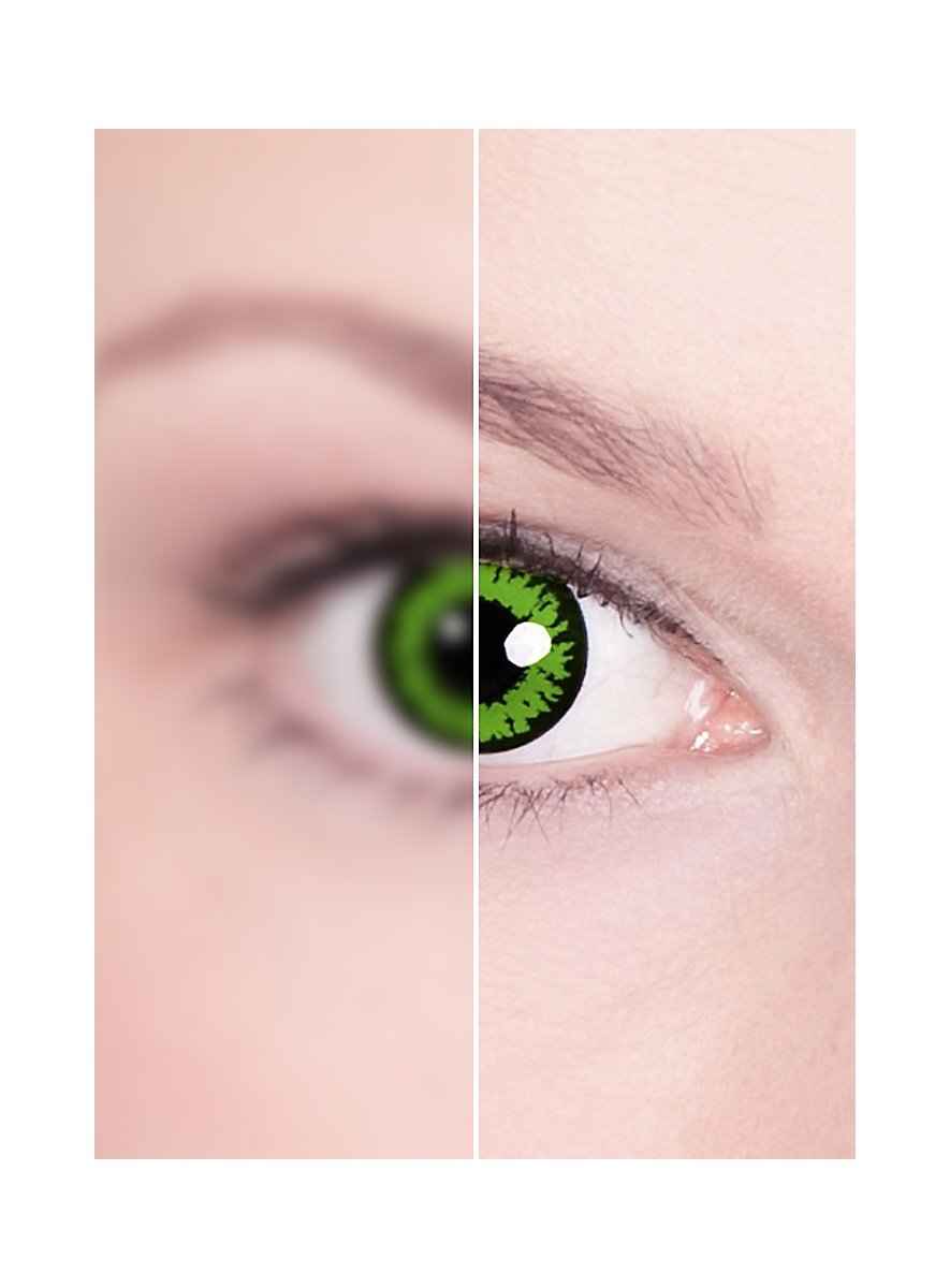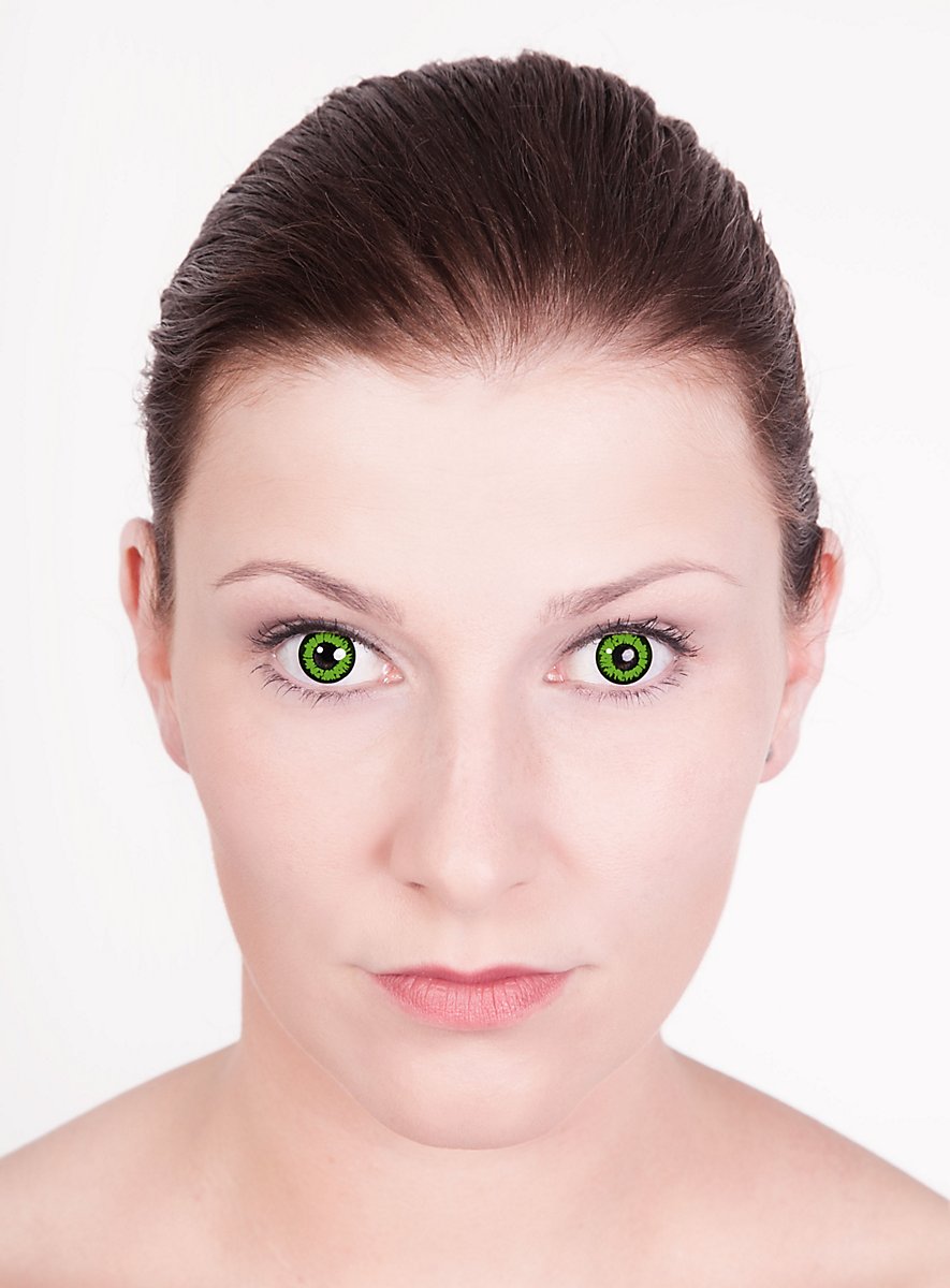 Lentilla de efecto de alta calidad con graduación: lentilla verde anual con dioptrías seleccionables – ¡perfecta para Halloween y Carnaval!