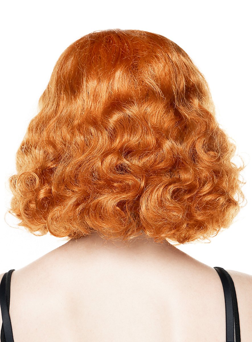 • cabello rojizo-naranja ondulado a los lados con raya lateral ligera