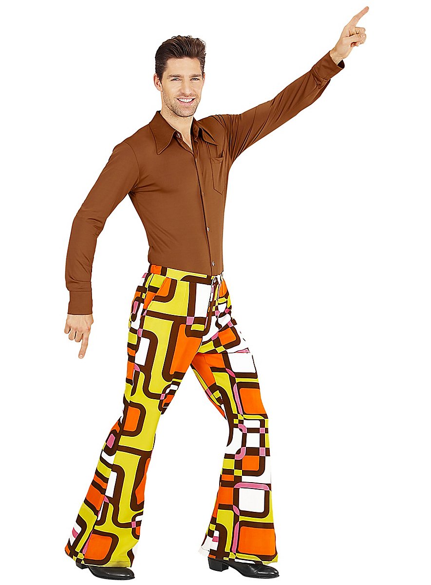 Para fiestas de música popular y temáticas: pantalón de campana colorido para hombres al estilo de los años 70