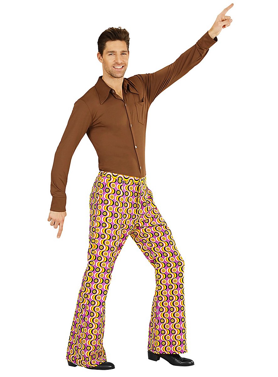 Para fiestas de música popular y temáticas: pantalones acampanados coloridos para hombres al estilo de los años 70