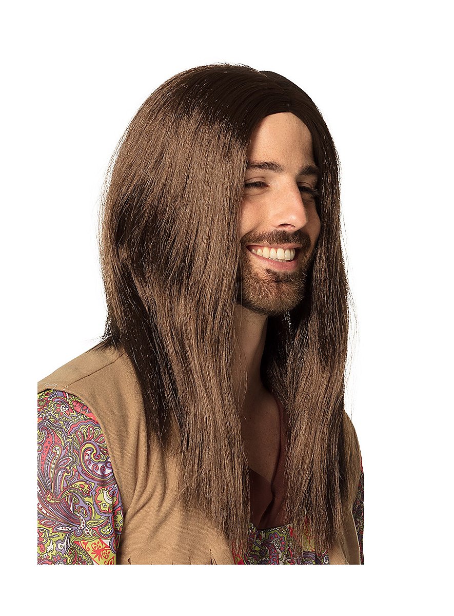 Peluca de pelo largo castaño con brillo mate. Para parecer un hippie al estilo de John Lennon, ¡no necesitas dejarte crecer una melena larga gracias a esta peluca!
