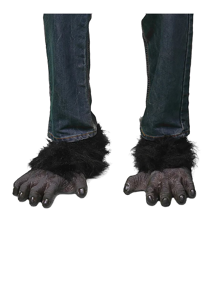Si quieres - sin importar la ocasión - hacer un mono creíble, entonces necesitas también los pies adecuados. Los mejores son nuestros pies de mono en color oscuro, porque para un gorila intimidante también hacen falta las patas correctas. Los pies de mono se colocan como cubrebotas sobre los zapatos, las bandas elásticas de goma proporcionan un ajuste firme y seguro a la vez. Para una mejor estabilidad, los dedos del gorila están rellenos de espuma. ¡Piezas geniales con calidad teatral!