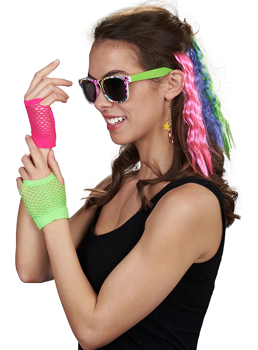 Set de colores neón con muñequeras, gafas y extensiones
