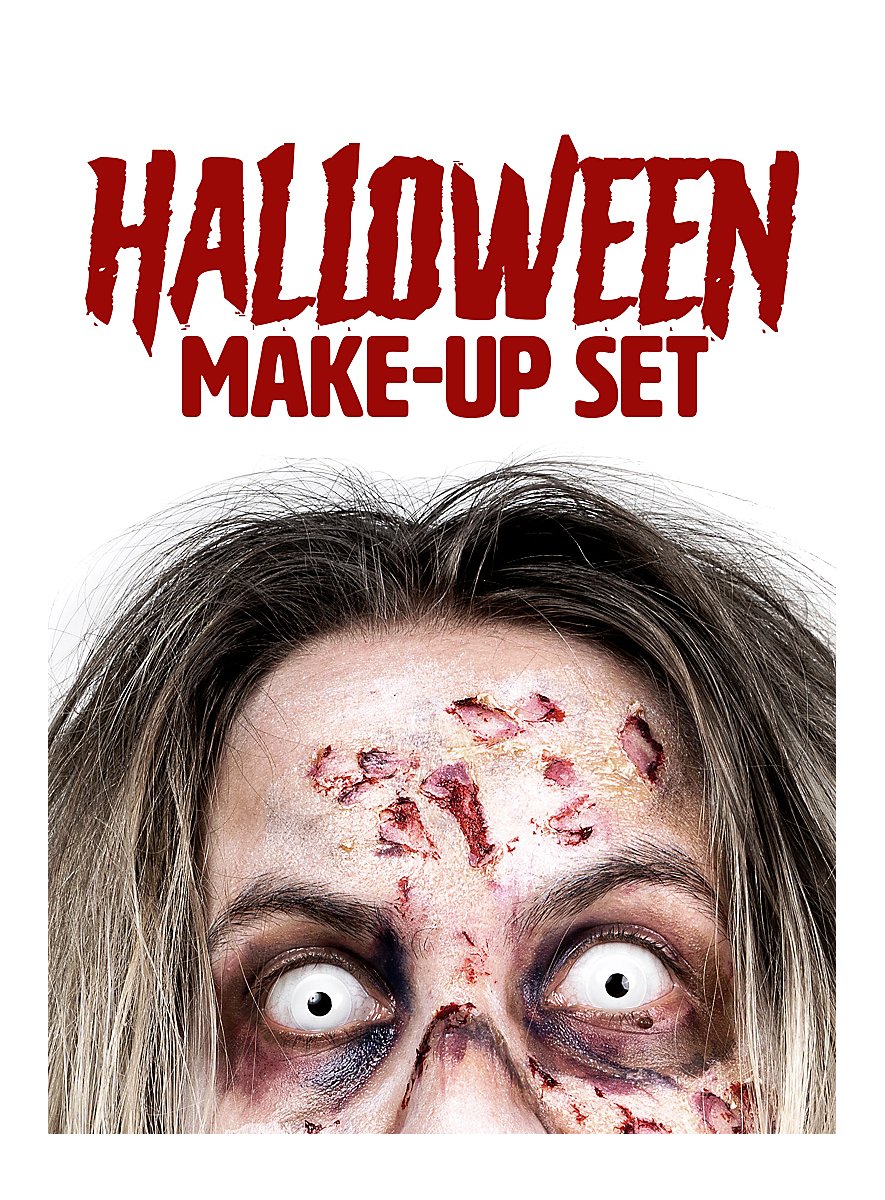 Set de maquillaje de terror con sangre, costras de heridas y colores de maquillaje para todos los zombis, payasos terroríficos y criaturas sangrientas