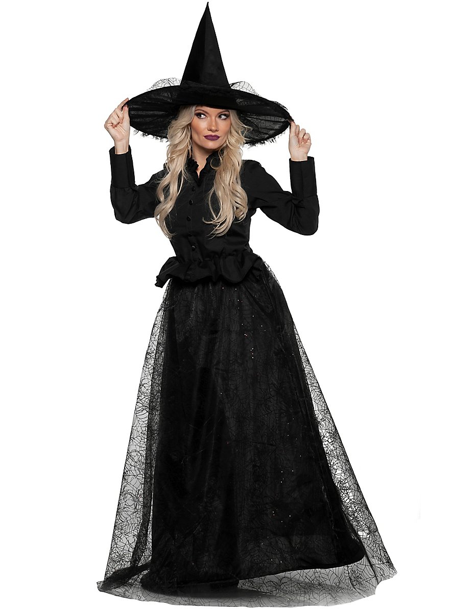 Sorcière de conte de fées d'un noir profond avec motif en toile d'araignée
