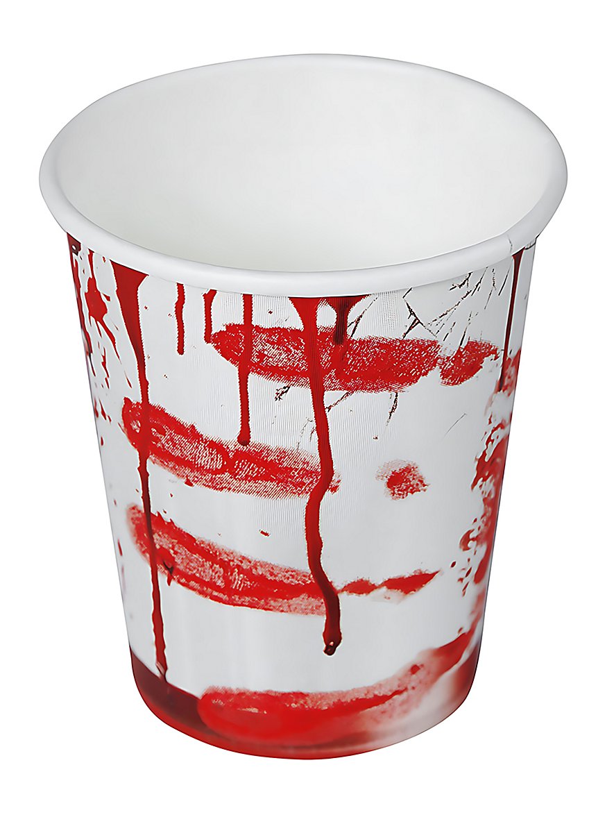 Das ist bestimmt nur Rotwein! Trinkbecher, hübsch mit Blutflecken dekoriert.