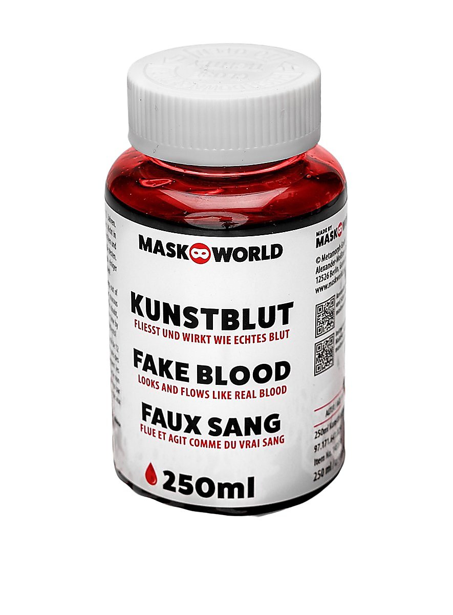 Das Blut lässt sich von der Haut problemlos abwaschen. Da es aber eine sehr hohe Deckkraft hat, kann es je nach Anwendung, Hautbeschaffenheit, verwendeten Reinigungsmitteln und Dauer der Trocknung etwas Geduld erfordern (1-2 Tage), bis die letzten Farbreste komplett verschwunden sind. Vor der Anwendung auf Textilien empfehlen wir grundsätzlich, die Farbe und Färbung an einer nicht sichtbaren Stelle zu testen. Zum einen kannst Du so sehen, wie die Farbe in Deinem speziellen Fall auf der Textilie wirkt, zum anderen kannst Du auch prüfen, ob sich die Farbe wieder entfernen lässt. Wobei wir den Einsatz nur auf Textilien empfehlen würden, die dauerhaft gefärbt bleiben können, da das Auswaschen häufig nur teilweise gelingt oder sehr viele Waschgänge in Anspruch nimmt.