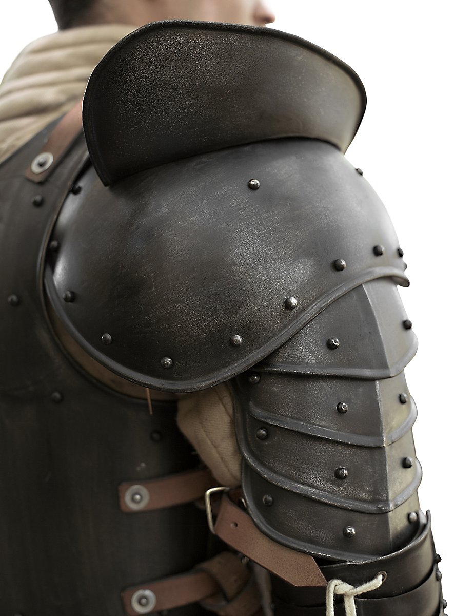 Massive Schulterplatten aus Stahl im eindrucksvollen Schwarz
