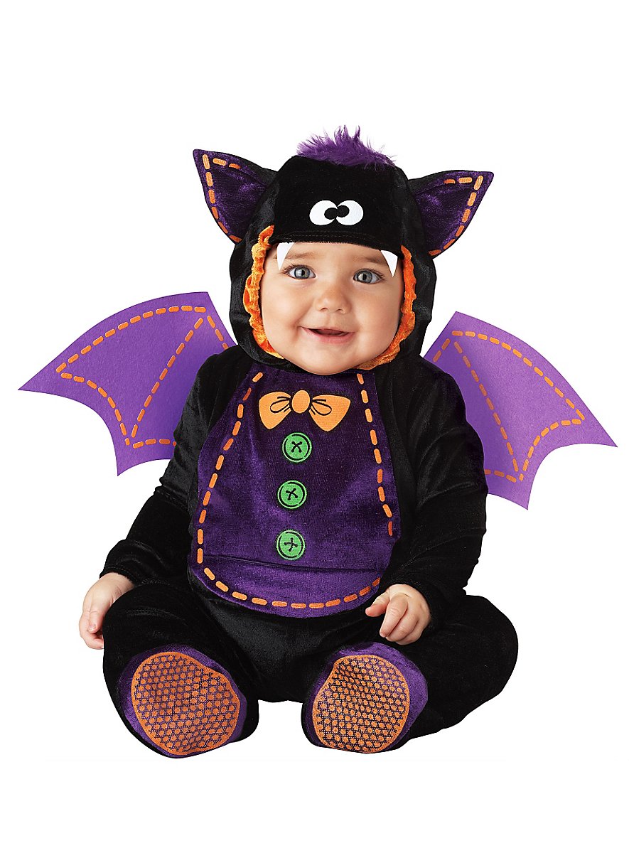 Un pipistrello così carino non si vede tutti i giorni. Costume da tre pezzi per bambino con tutina, cappello e ali. Anche i bambini amano Halloween.